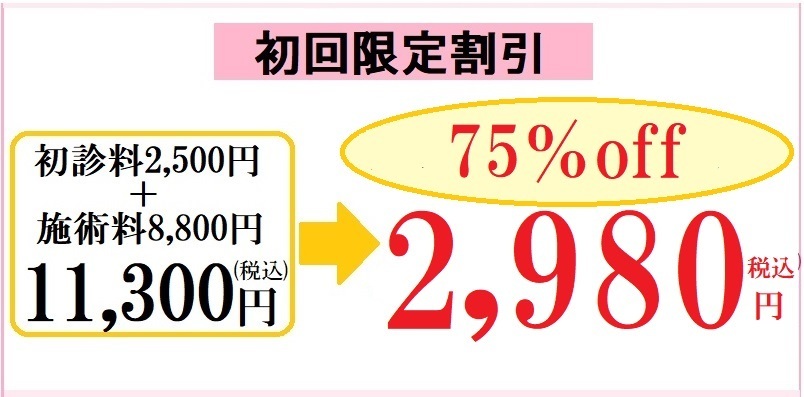 本来 初診料(2,500円)+施術料(8,800円)=11,300円ですが、令和7年12月31日をもちまして治療院移転のため特別キャンペーンにより2,980円で受診して頂けます。